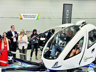 在2025年“人工智能向善”全球峰会期间,中国科技企业亿航智能携载人级自动驾驶飞行器参展。图为观众走进驾驶室进行体验。