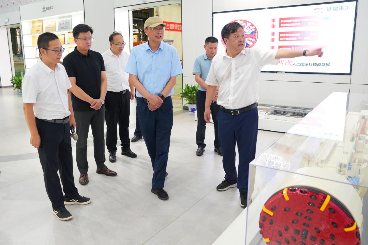 在全球最大的高端地下工程装备制造基地——铁建重工长沙第二产业园,葛世荣一行先后参观了铁建重工全断面隧道掘进机生产线、钻爆法隧道装备生产线、矿山装备生产线和原创技术策源地成果展厅,深入听取了矿山智能化产品产业发展专项报告,并对铁建重工在新型矿山系列装备研发领域的创新成果给予高度肯定。赵晖对葛世荣一行表示热烈欢迎,他指出铁建重工在矿山装备制造、技术转移转化、科研项目攻关等方面有着深厚基础和经验,期待与院士团队展开更深层次、更宽领域的合作,携手攻克行业痛点,共同打造可复制、可推广的矿山智能化发展新模式。