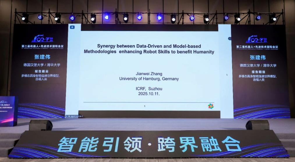 主旨报告环节共邀请6位专家作前瞻性报告。德国国家工程院院士、中国工程院外籍院士张建伟作题为《多模态具身智能连接世界模型、造福人类》的报告;清华大学教授孙富春作题为《大模型具身智能及其产业应用》的报告;哈尔滨工业大学/苏州大学教授孙立宁作题为《具身智能机器人新质生产力创新发展》的报告;山东大学教授宋锐作题为《“灵枢”—基于双足基元的模块化自重构足式机器人系统》的报告;中国科学院苏州纳米技术与纳米仿生研究所张珽研究员团队作题为《柔性智能感知器件:从电子皮肤到脑机接口》的报告;香港中文大学教授张立作题为《医用磁控微型软体机器人:仿生与生物杂化设计》的报告。