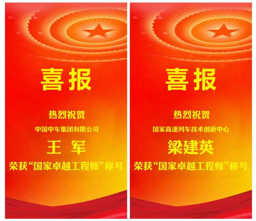 1月19日上午,“国家工程师奖”表彰大会在人民大会堂举行。中国中车集团有限公司王军、国家高速列车技术创新中心梁建英两名专家被授予“国家卓越工程师”称号(全国共81名)。王军、梁建英、刘长青、陈亮、冯江华等五位专家参与的“复兴号高速列车科技创新团队”被授予“国家卓越工程师团队”称号(全国共50个)。