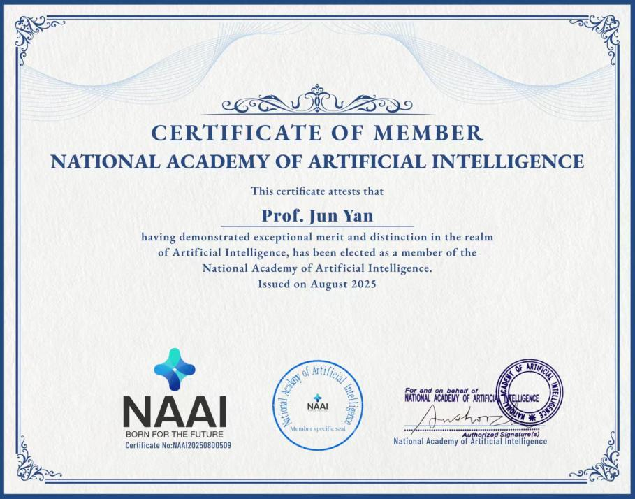 2025年8月,青岛科技大学数据科学学院颜军院长成功当选美国国家人工智能科学院(The National Academy of Artificial Intelligence,NAAI)院士。美国国家人工智能学院贺信中高度赞扬了颜军院长在人工智能领域的“非凡成就和开创性贡献”,指出其“创新性研究、深刻见解和坚定不移的奉献精神激励了无数学者和从业者”。颜军院长的加入,将进一步丰富NAAI的学术讨论、科研合作及人工智能领域的全球推进工作。
