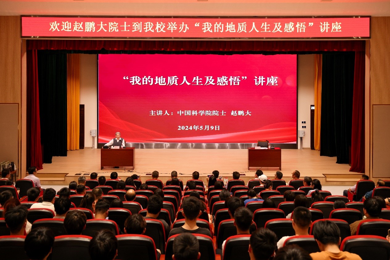 5月9日下午,中国科学院院士、中国地质大学原校长赵鹏大教授应邀莅临我校,在多功能报告厅为我校师生带来了一场题为“我的地质人生及感悟”的精彩报告。省教育厅二级巡视员黄才华、应急厅工贸处处长张永杰、中国地质大学校友、全体领导班子成员出席报告会,全体中层正职,地矿工程学院200余名师生代表参加报告会。校党委书记焦洪涛主持会议并讲话。